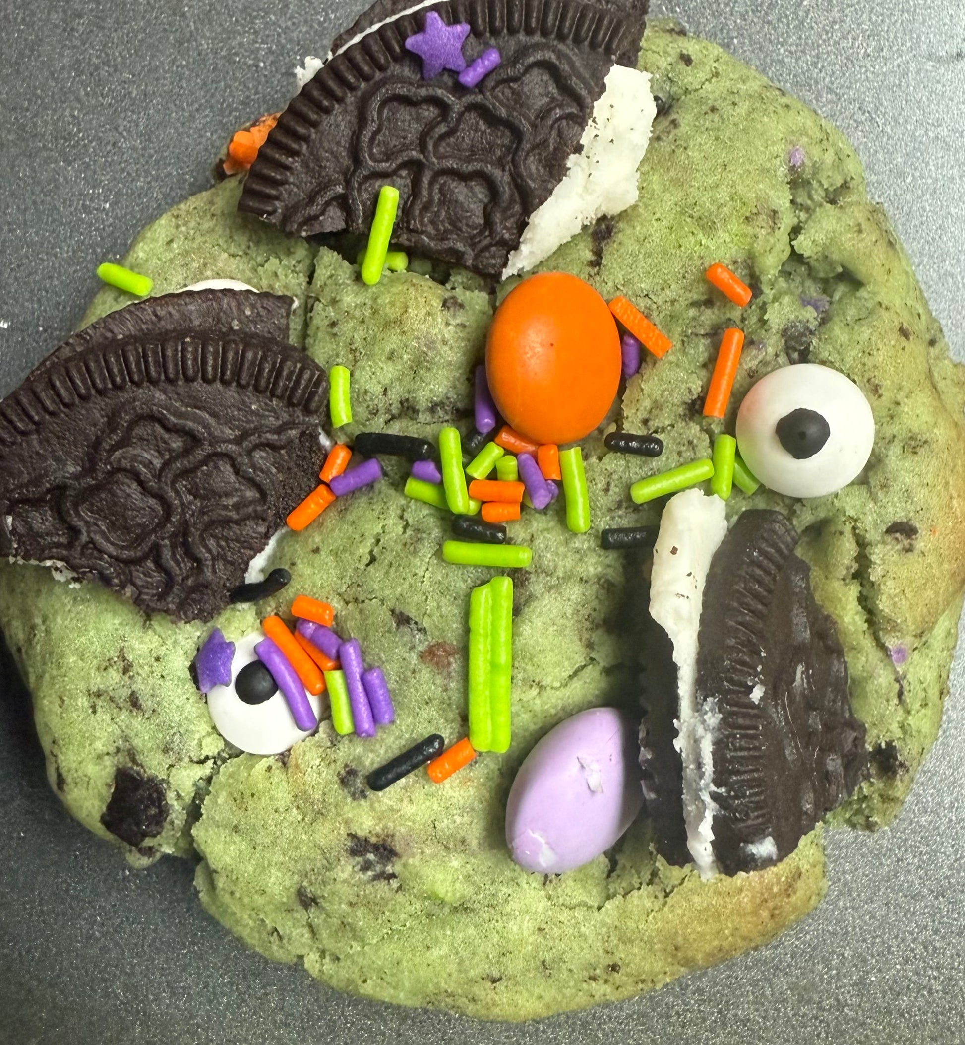 A spooky twist on a classic favorite! This green cookies-and-cream cookie is packed with crushed Oreos and festive Halloween sprinkles. Soft, chewy, and monstrously delicious.